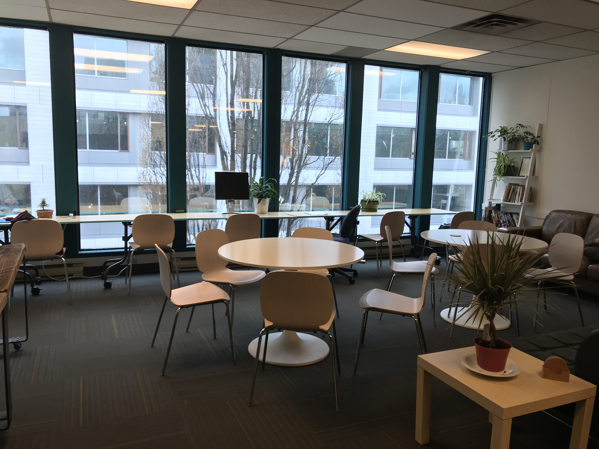 an on-line conversation and access a phone booth type space with a drop down desk. One day you may decide that sitting at a large work table with 8 other people is what you want, while the next a quiet, tucked away couch is what’s called for.