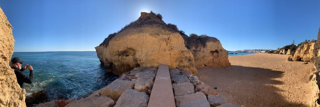 I went for a walk on the beach today, as I have done most days since arriving in Albufeira, Portugal. This is a true novelty for me–not the walk, but where I walk. No need for winter jackets, gloves, touques, or boots. No snow. Most days the sun has been shining, but even on cloudy or rainy days, the weather is very mild with temperatures hitting around 16-20 degrees. We even had an amazing day at Monchique where the temperature hit 25 degrees.